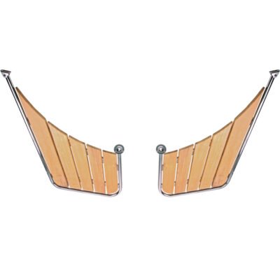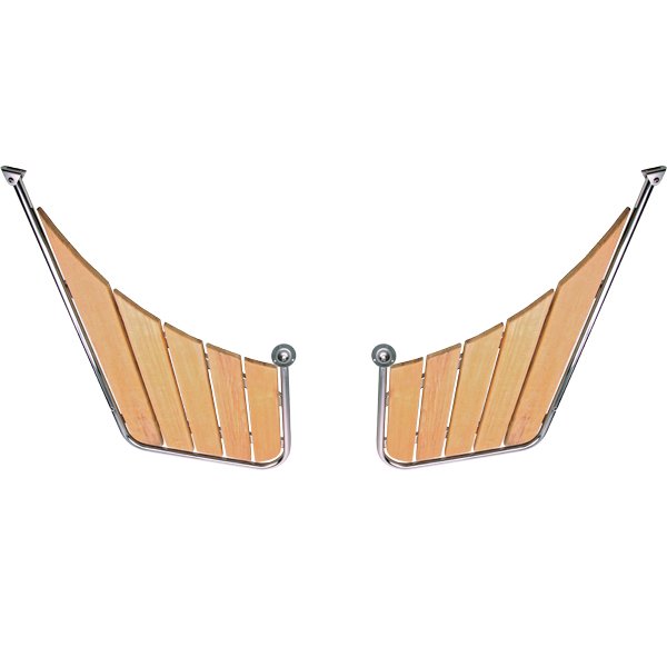 2-delad stävplattform i AISI 316 rostfritt stål med kvalitetsteak passar spetsiga akterpartier, t.ex. Nordisk Snekke. Alla plattformar har universalbeslag som passar de flesta båtar.