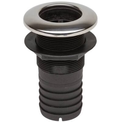 Rak genomföring med rostfritt stål hätta. Med gänga och slangstos i olika storlekar.