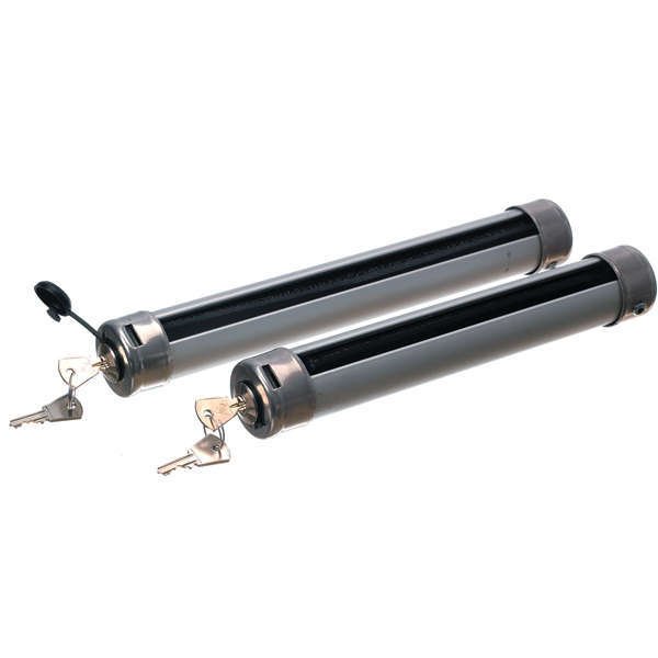 Kraftfull modell av eloxerat aluminium med rostfria ändstycken och inbyggt lås m. två nycklar.