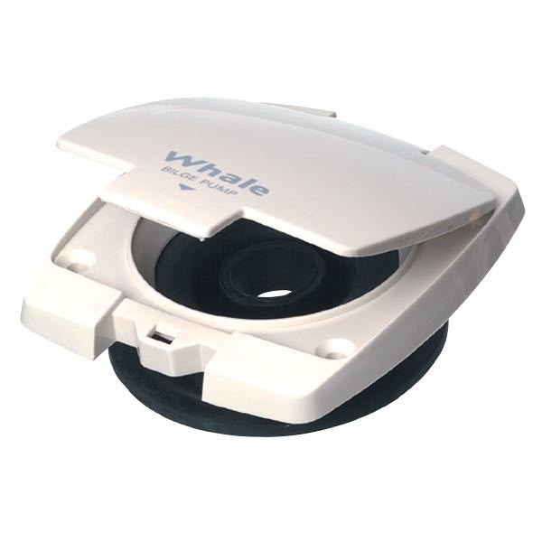 Whale däcksplatta i plast med lock och 4 hål. Till Whale MK5 länspump BP0510